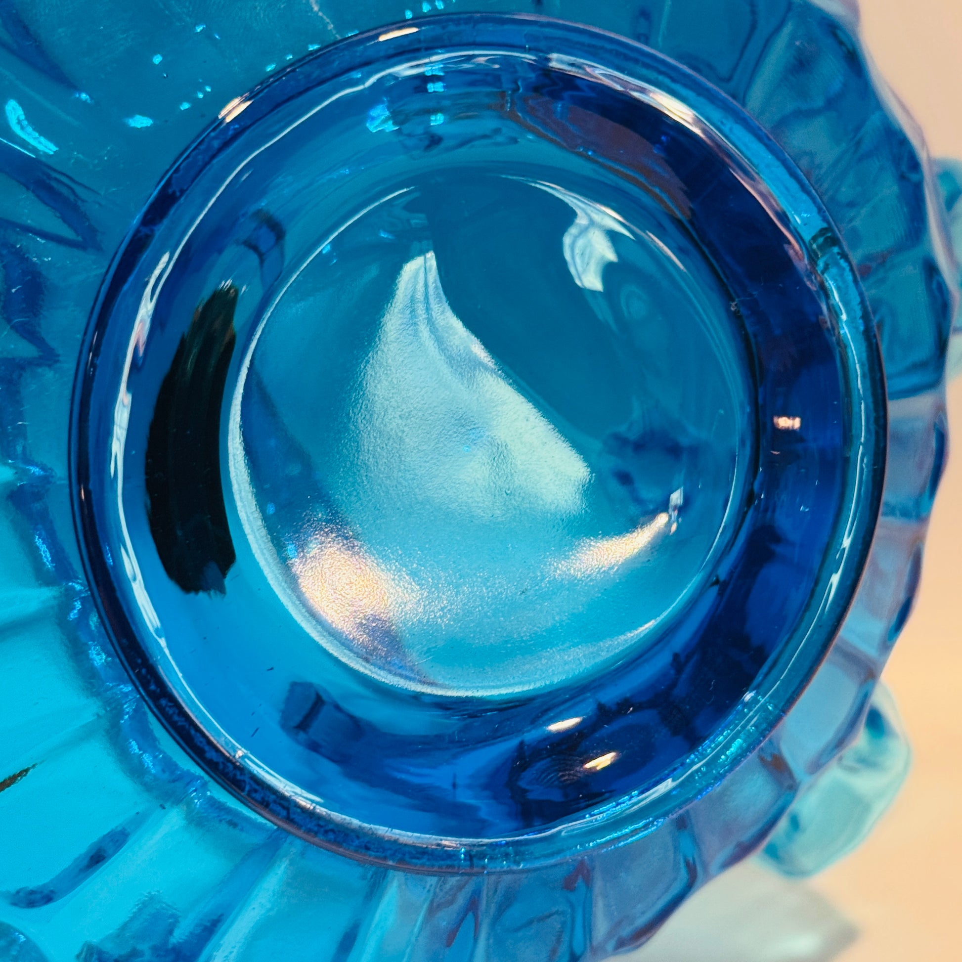 Fenton Cobalt Thumbprint Handled Glass Basket