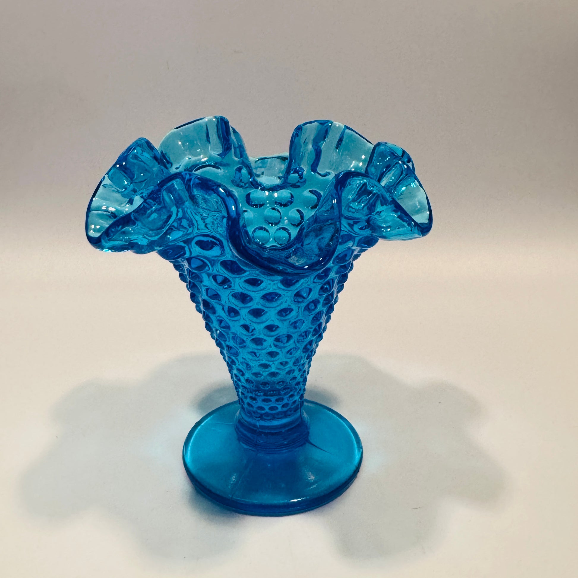 Fenton Colonial Blue Hobnail Ruffled Edge Vase