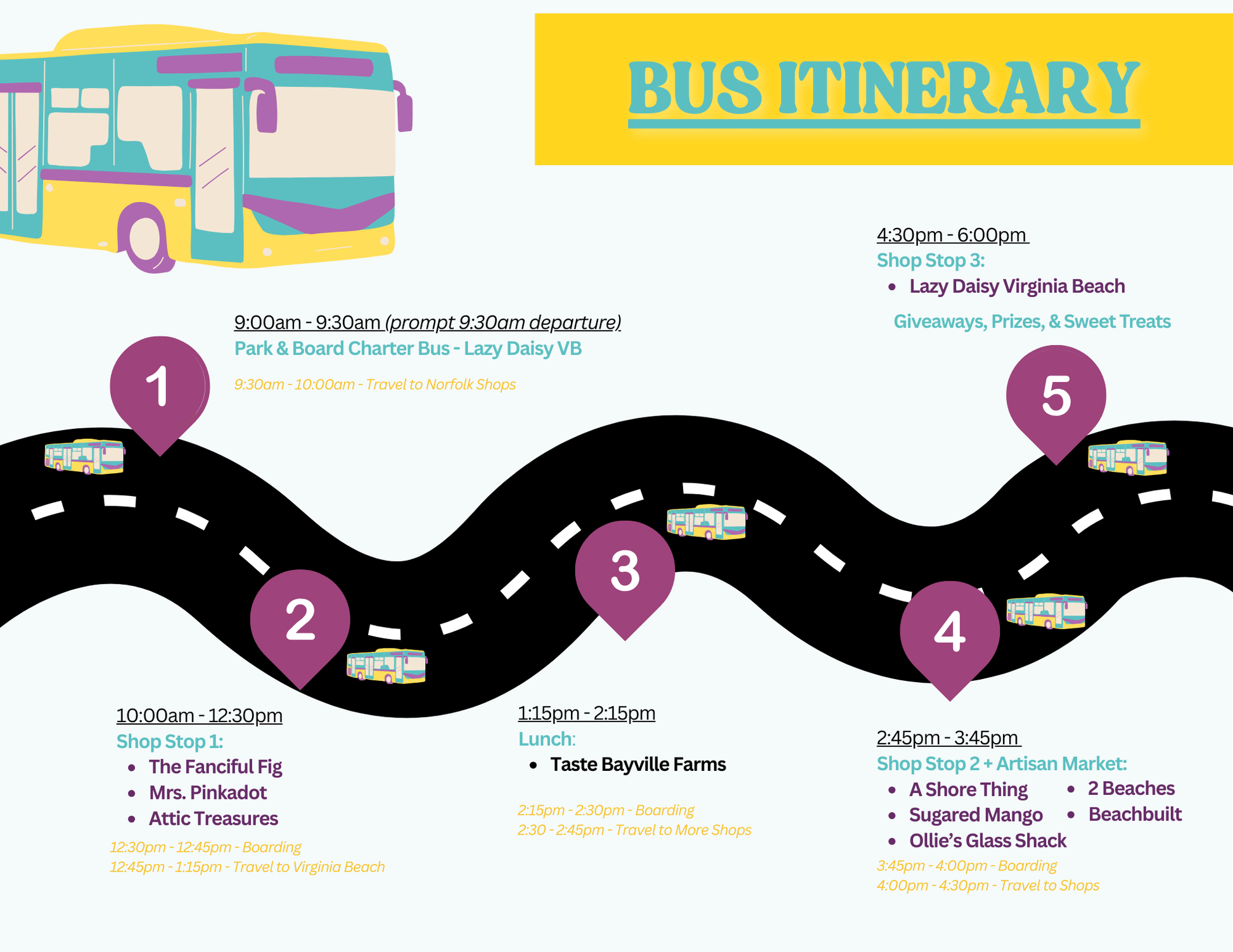 Jump on the 'Shop Small' Fall Crawl bus for a delightful day exploring some of Norfolk and Virginia Beach’s best local shops! Discover antiques, vintage treasures, farmhouse and coastal styles, artisan handmade gifts, holiday decor, and so much more. Enjoy a tasty catered lunch, take part in exciting giveaways and prize drawings, and leave with a swag bag full of special finds. Perfect for treasure hunters and gift seekers alike—join the fun on Saturday, November 29, 2025, and support small businesses with style and smiles!