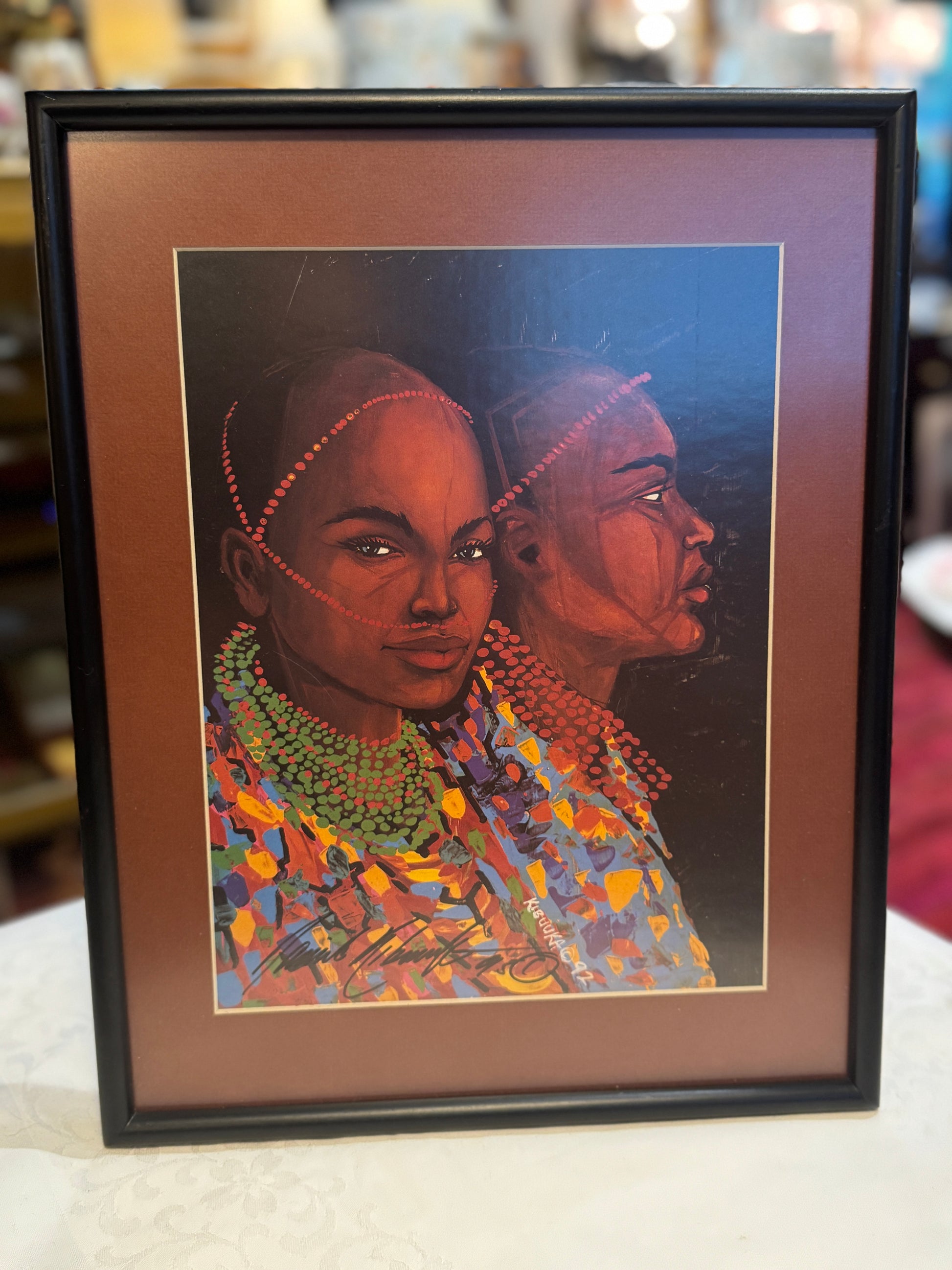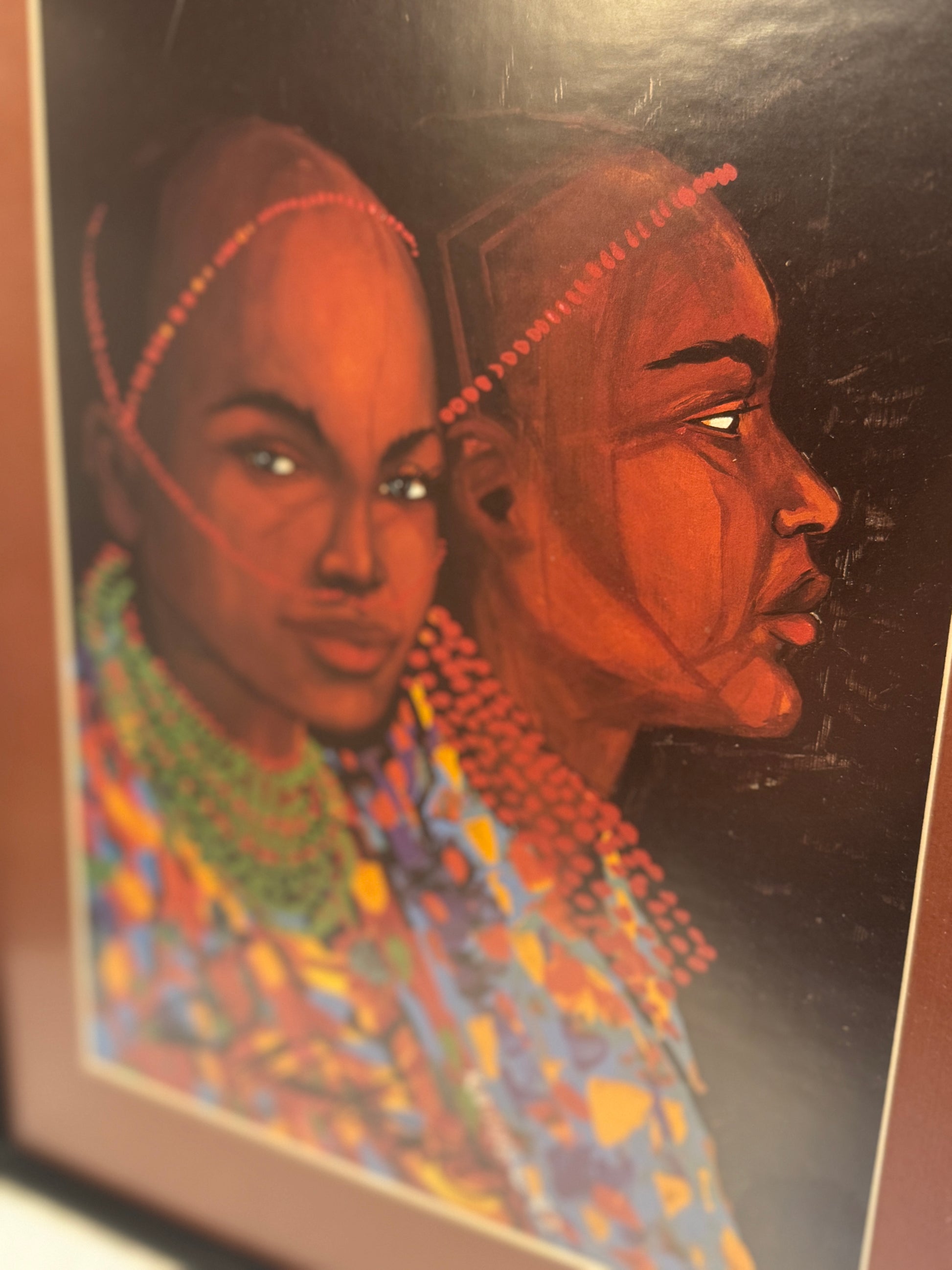 Signed, Matted, Framed Art Print - Twin Sisters by David Kibuuka
