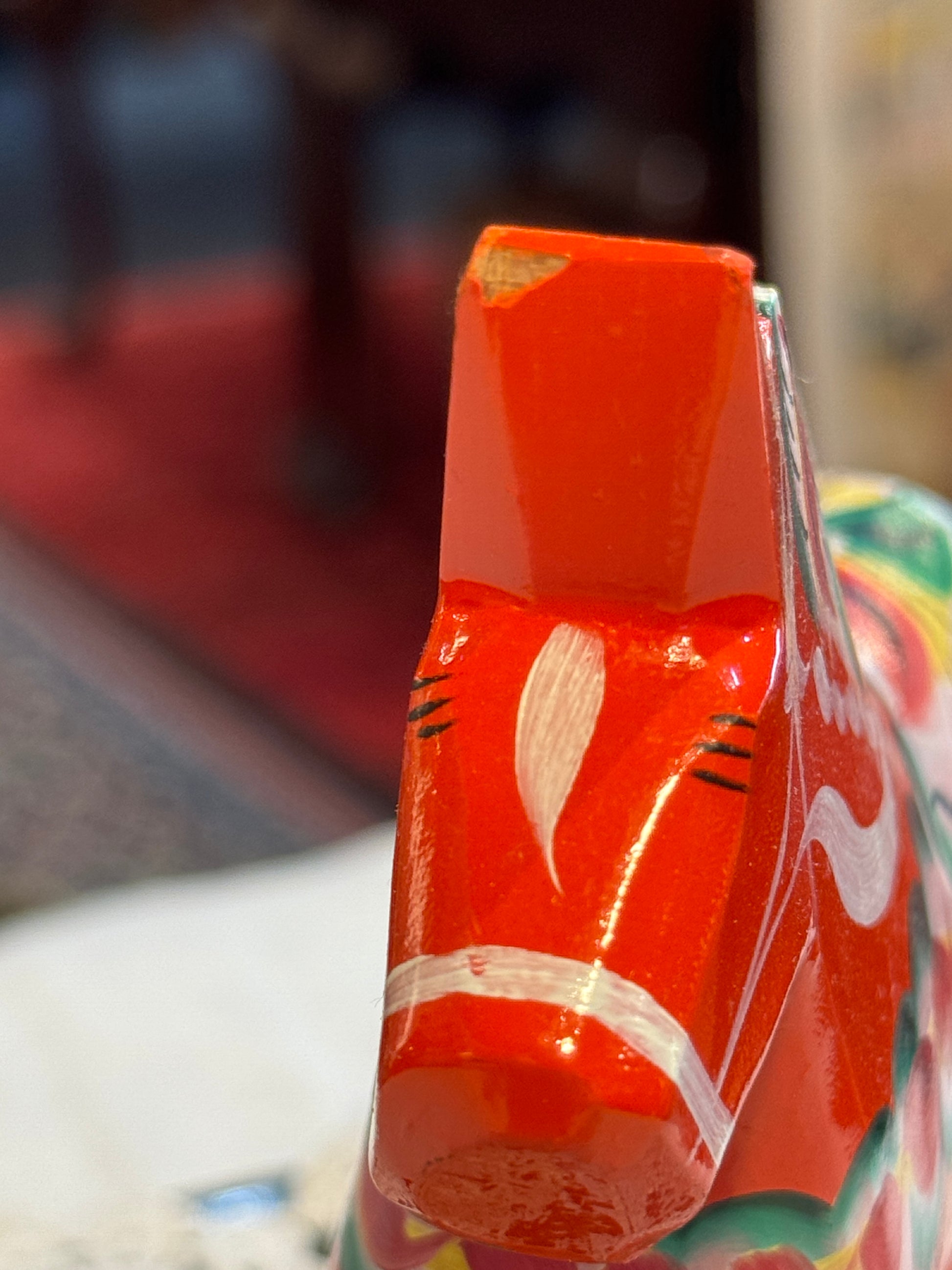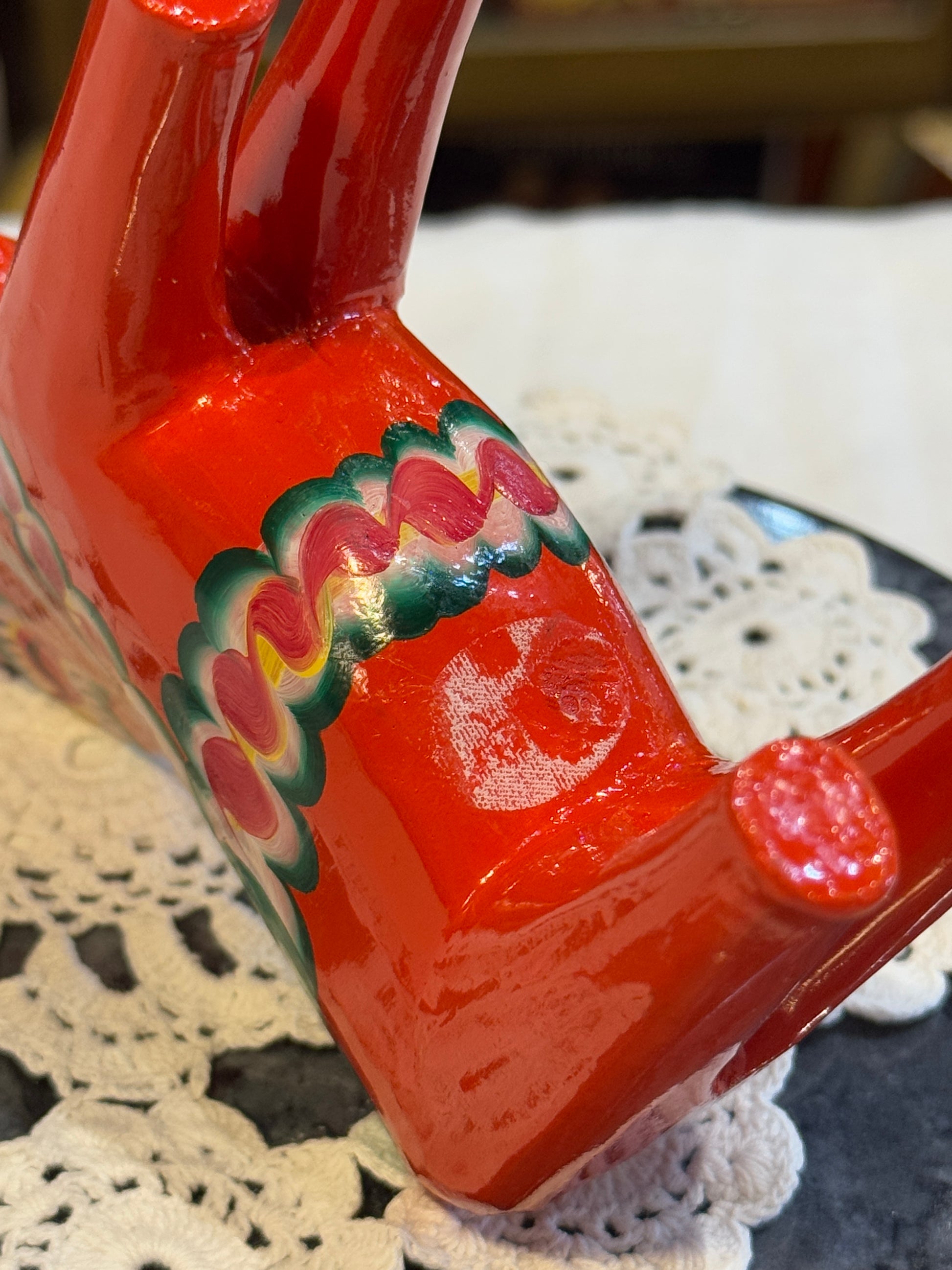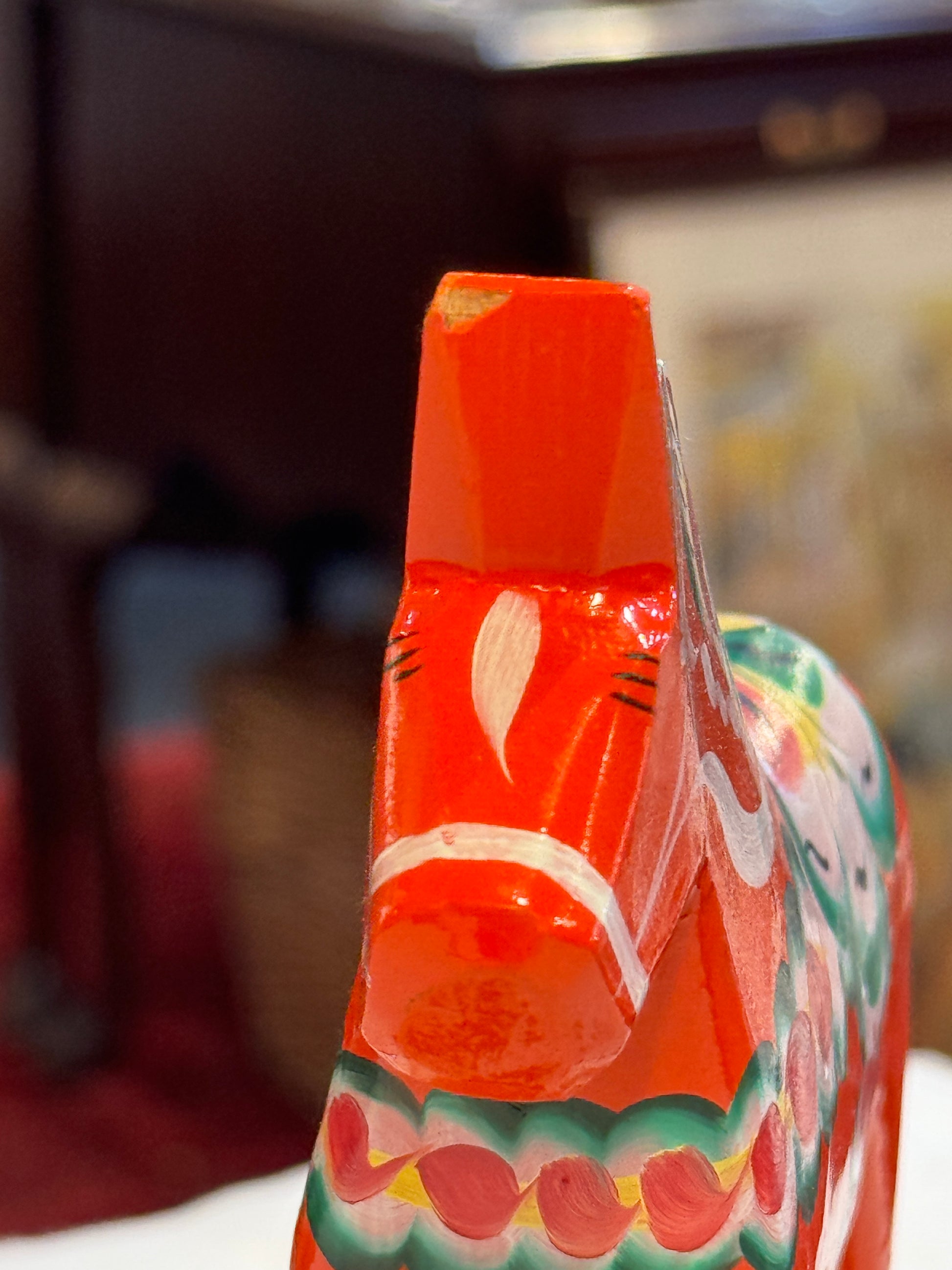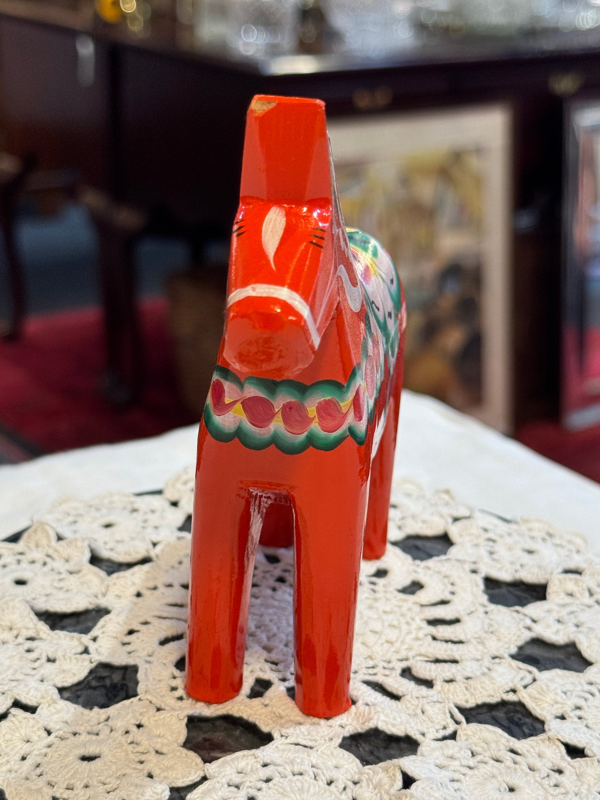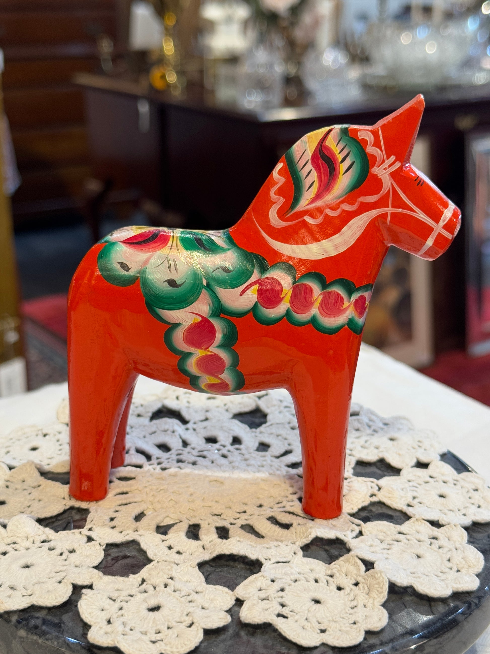 The Swedish Dala horse, or "Dalahäst," is a traditional carved and painted wooden horse figurine that symbolizes Swedish culture and craftsmanship. It is a popular souvenir and gift, often representing good luck, prosperity, and happiness.