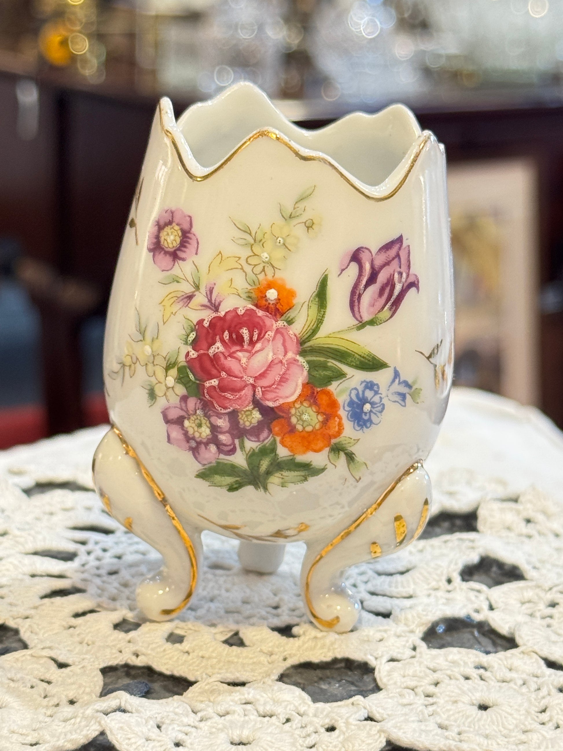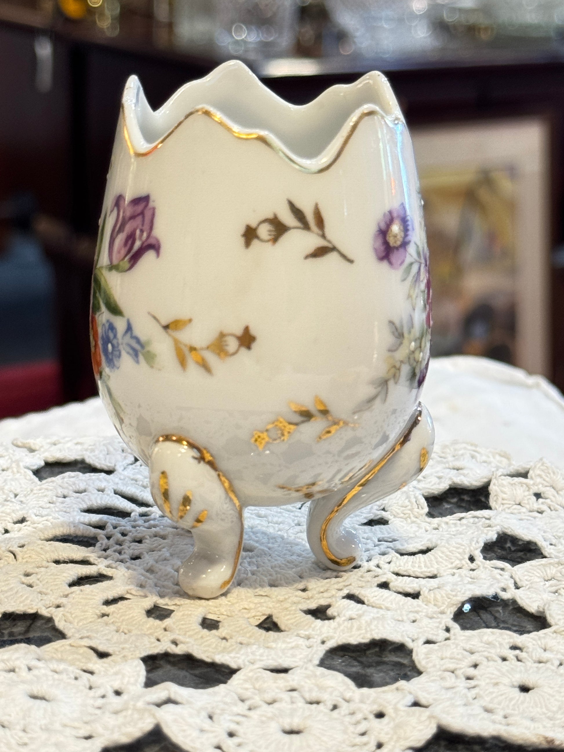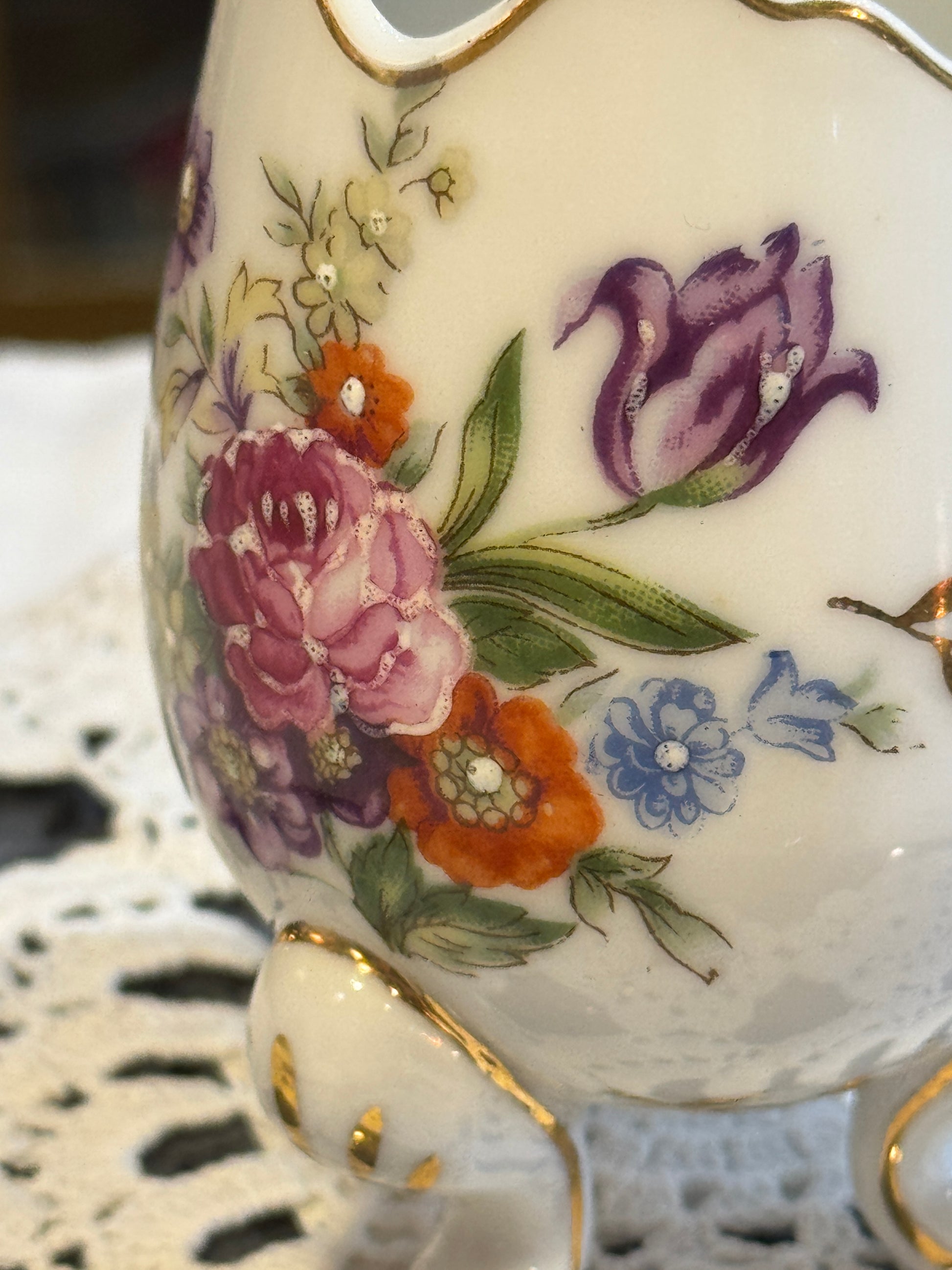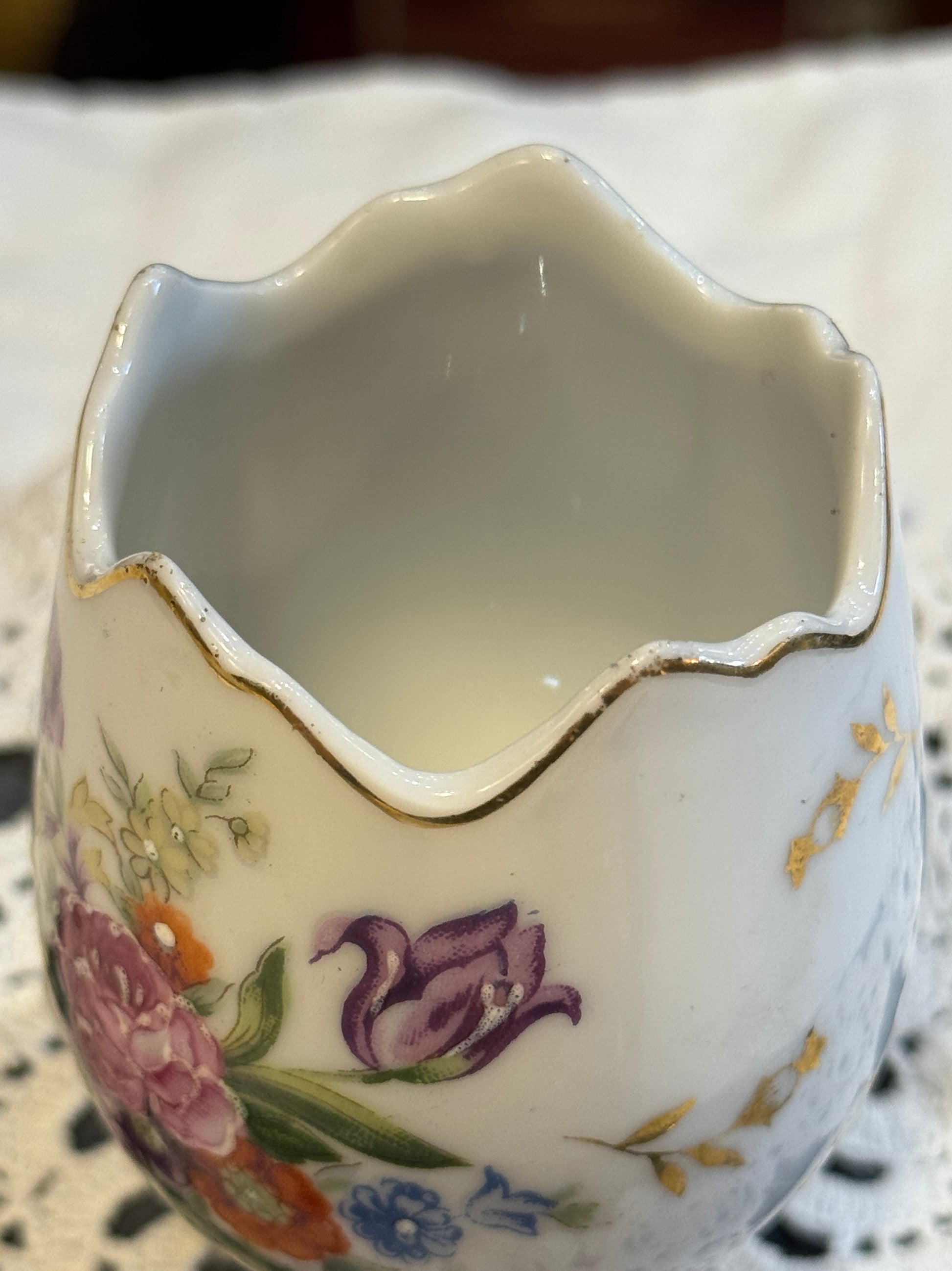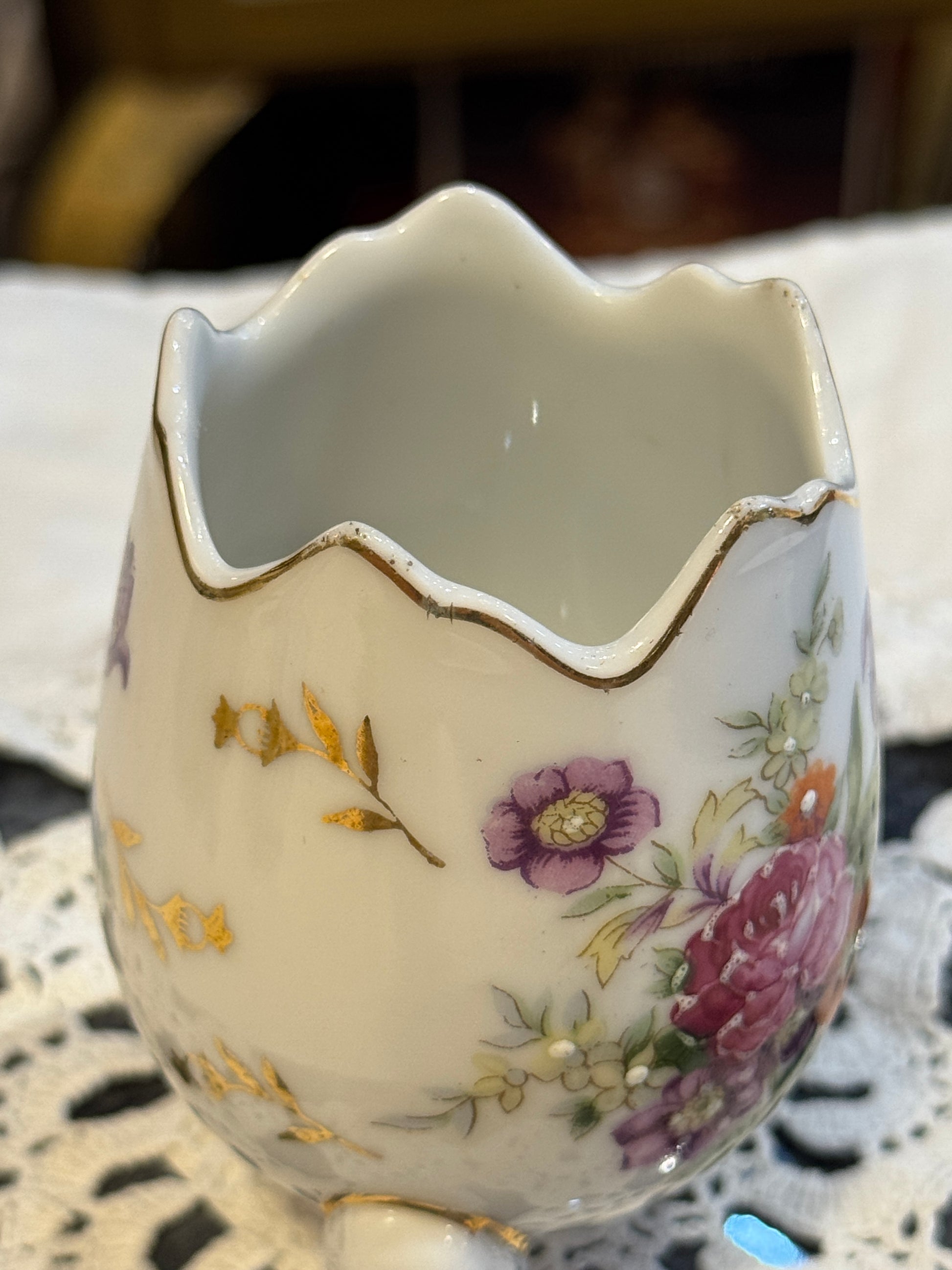 Unmarked Ceramic Floral Cracked Egg Vase